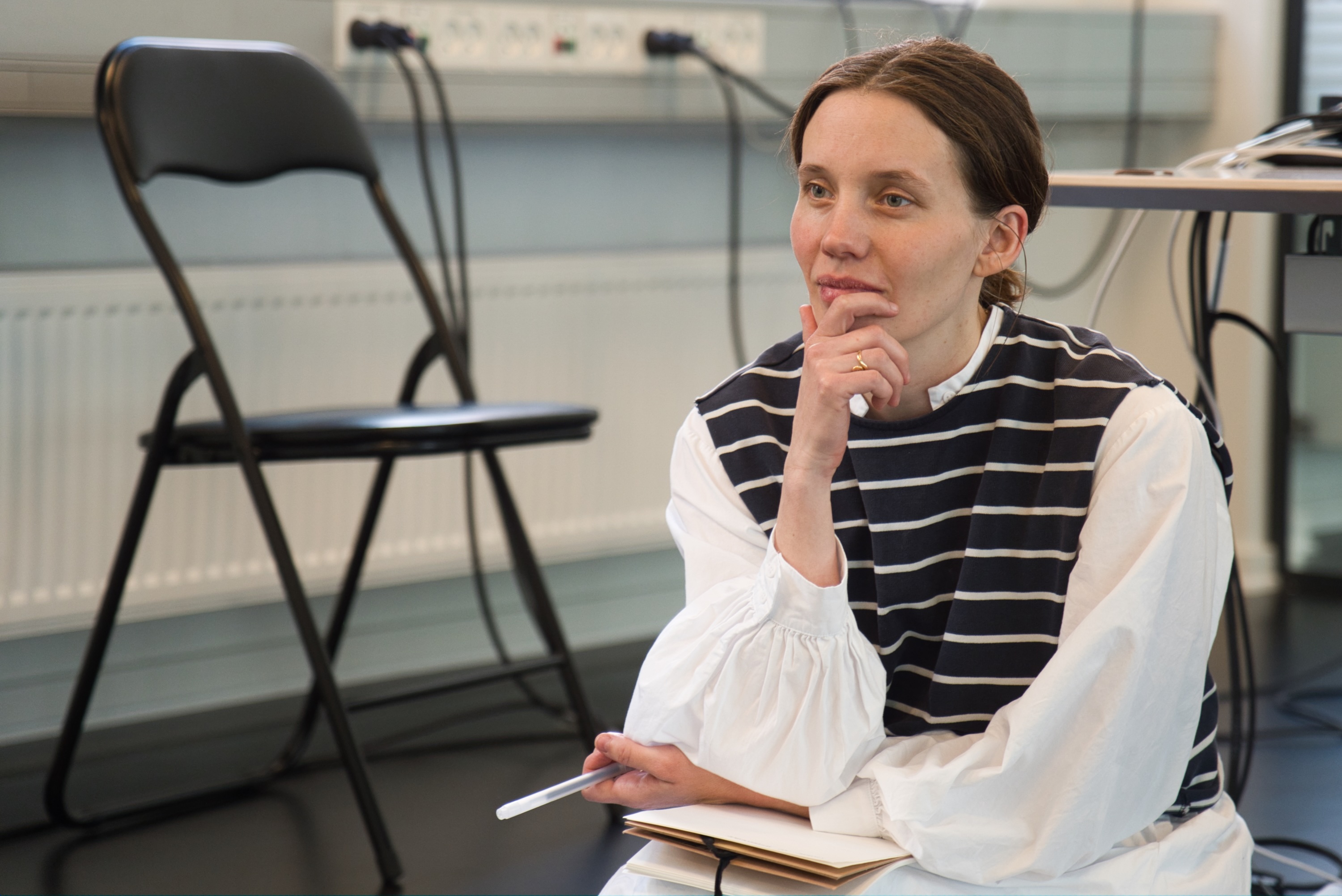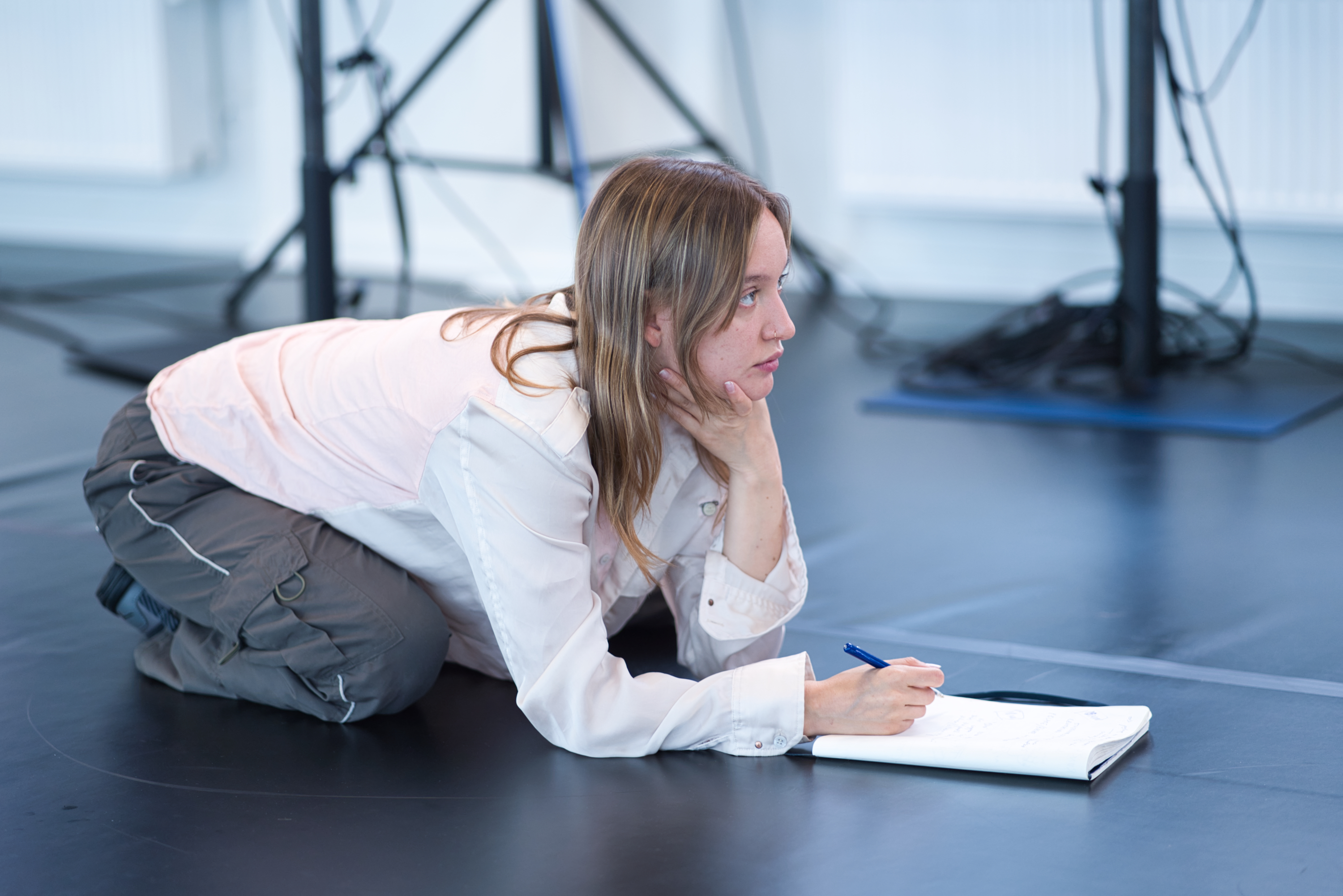 Med referencer til mytologiers og myters indflydelse på menneskets tilstand idag undersøger vi mulighederne for det langvarige møde, det tavse forsvar, det udmattende i at bære rundt på fortiden og hvordan man frasiger noget, der allerede er etableret. Med inspiration i den menneskelige strejke (Tiqunn), der beskriver tavshed, afbrydelser og afslagshandlinger som et forsøg på at kortslutte et eksisterende system, undersøger vi langsomt og nænsomt muligheden for at ændre forhistoriske narrativer, og forsøger således at skabe et mulighedsrum, hvori bevægende ubevægelighed bidrager øjeblikke hvor nye perceptioner og perspektiver kan opblomstre.