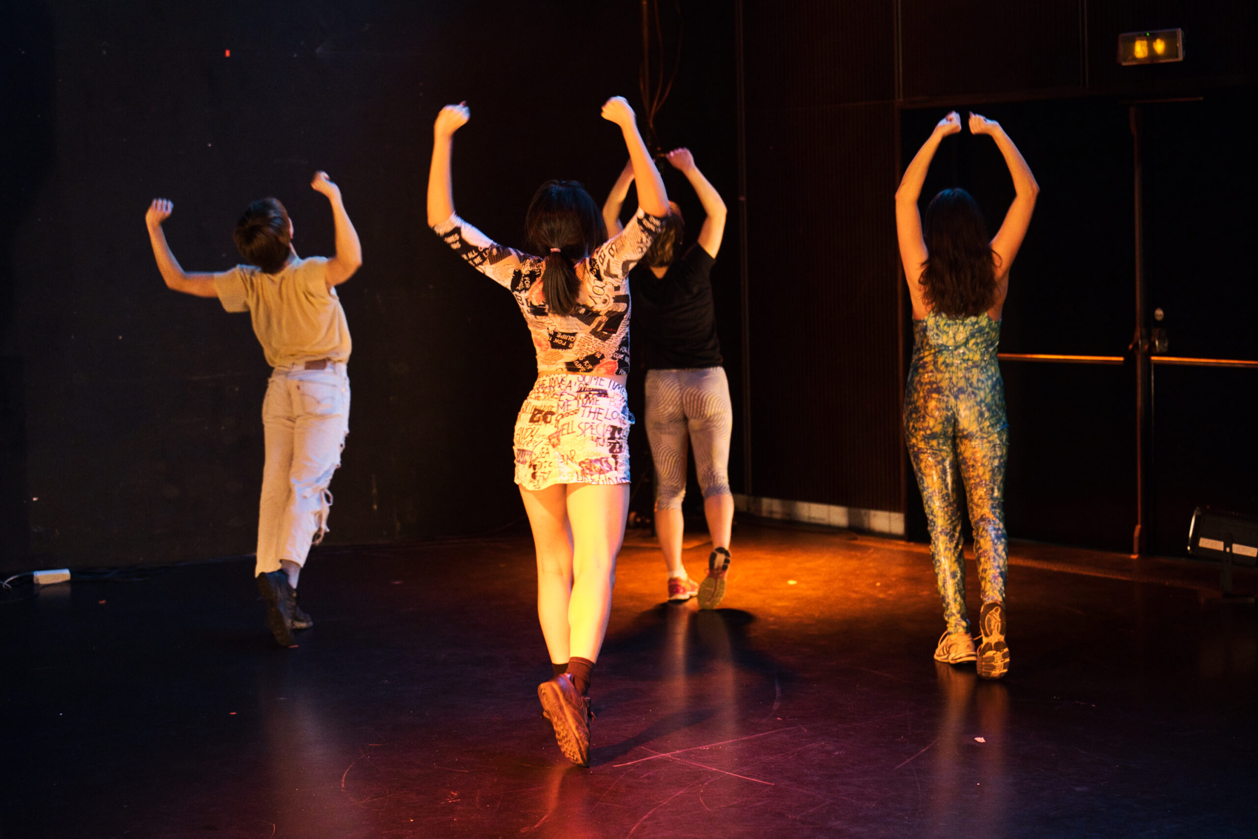 Kunstnerne har udforsket forskellige måder at koreografere, placere, sammenstille og komponere ord, tekst og dans på. Hvordan foregår betydningsdannelsen og meningsskabelse? Hvordan bliver ord fyldt med tegn, retninger, affekter og spændinger? Hvor mobile er ord?